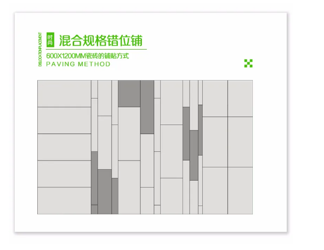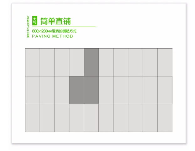 石家庄明轩社会责任咨询有限公司600x1200MM系列的铺贴方式多样化,直铺、工字型、回字形、混合铺贴等等都可适用,只有你想不到没有办不到的。